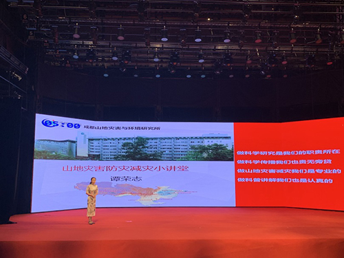 本次比賽分為展品輔導(科技館組個人賽)、科學表演(科技館組團體賽)、科幻創(chuàng)新作文組、科學詮釋者組4個類別。成都山地所組織選手參加了科學詮釋者組的比賽。譚榮志在科學詮釋者成人組比賽中,為大家詮釋了九寨溝風景區(qū)泥石流治理的情況,她以穩(wěn)定的現場表現、從容的臺風把科學知識形象生動地展示出來,贏得了現場熱烈的掌聲。