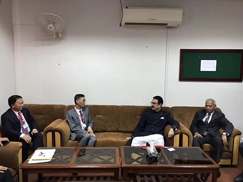 洪天華執(zhí)行主任與姚敬大使、Ali校長、Shah主任等進(jìn)行座談交流